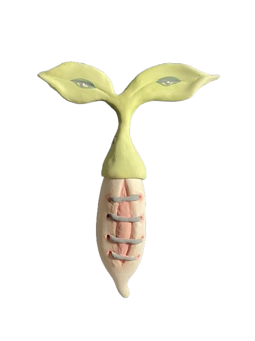 As the root accepted its mending, two leaves unfurled, but they did not rise as blank greenery. They emerged as the eyes of the soil. These eyes do not look at the sun; they look at the witness. They are the eyes that survived their own shattering and chose to bloom anyway. They remind the viewer that perception is not a gift for the unblemished, but a reward for the sutured.